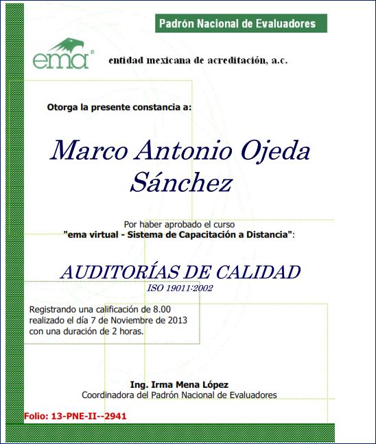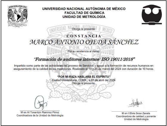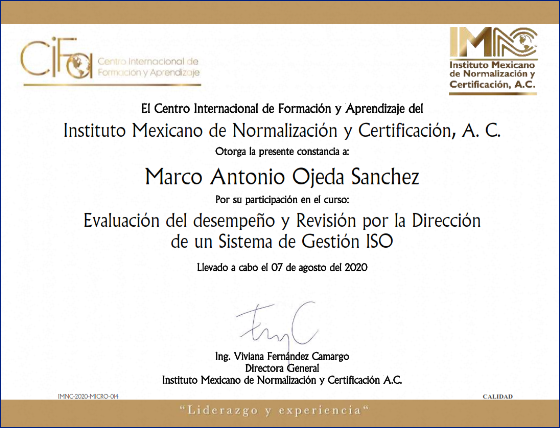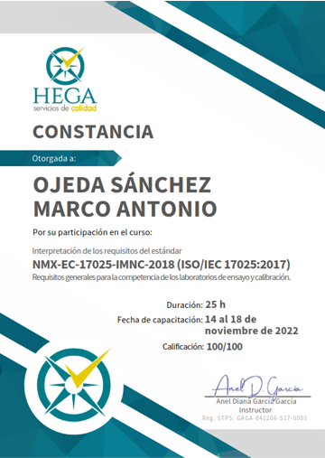 A continuación algunas constancias de entrenamiento entre cursos y estadías de especialización del responsable de metrológia de Metricus México...